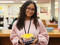 Seabreeze sophomore Savannah Surgent holds up a bowl. Photo by Jarleene Almenas