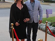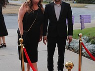 Guests take a photo at the red carpet at Mardi Gras. Photo by Hannah Hodge