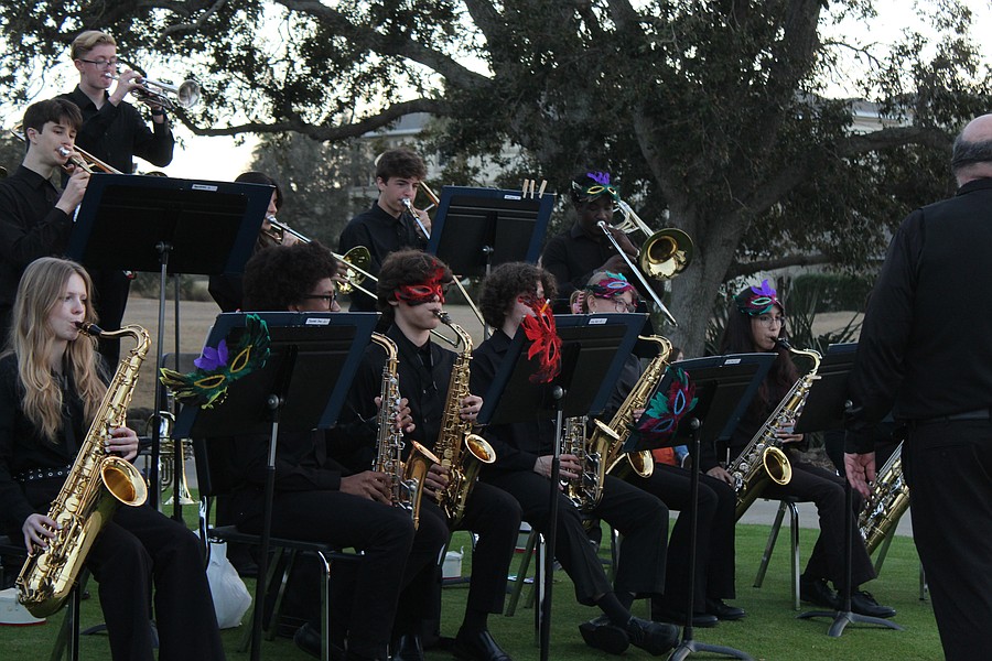 The Matanzas High School jazz band plays music at Mardi Gras. Photo by Hannah Hodge