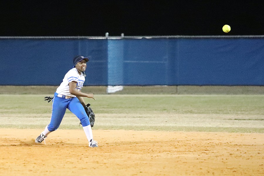 Matanzas second baseman Destiny Clanton throws to first. Photo by Brent Woronoff