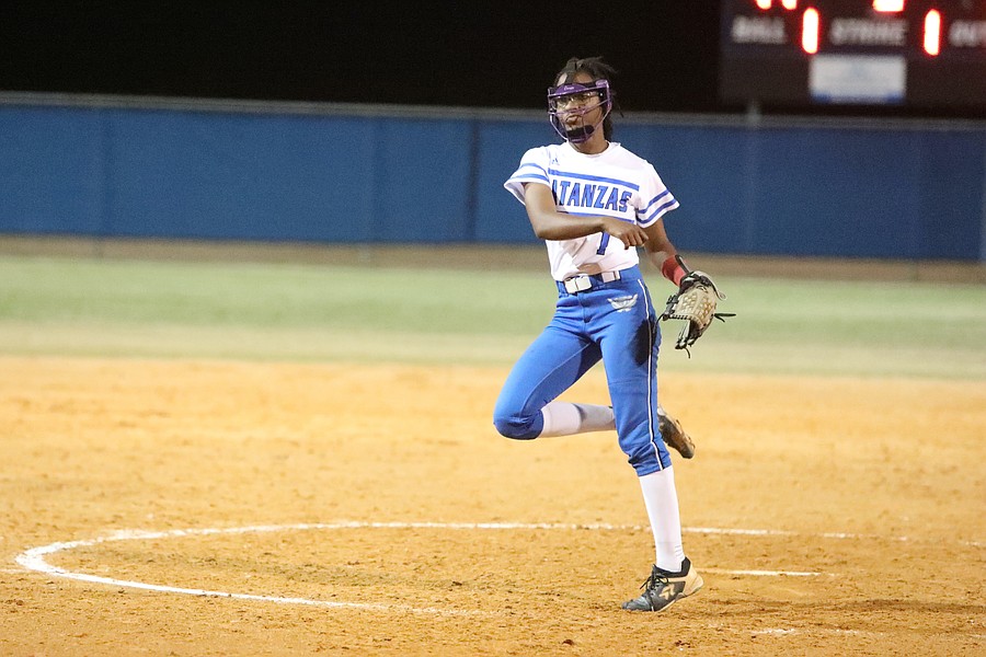 Matanzas sophomore Trinity Wright throws a pitch. Photo by Brent Woronoff
