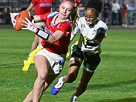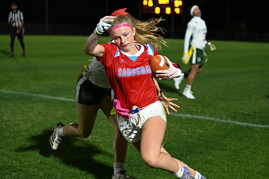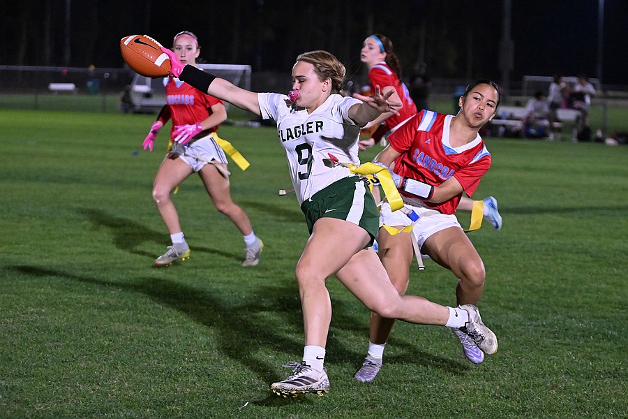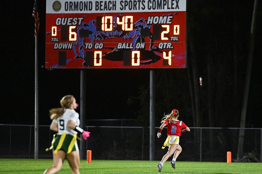 Madison Opalewski ran for a long touchdown early in the fourth quarter and then added the extra point to lift Seabreeze to a 9-6 flag football victory against Flagler Palm Coast on Thursday, Feb. 19, at the Ormond Beach Sports Complex.
