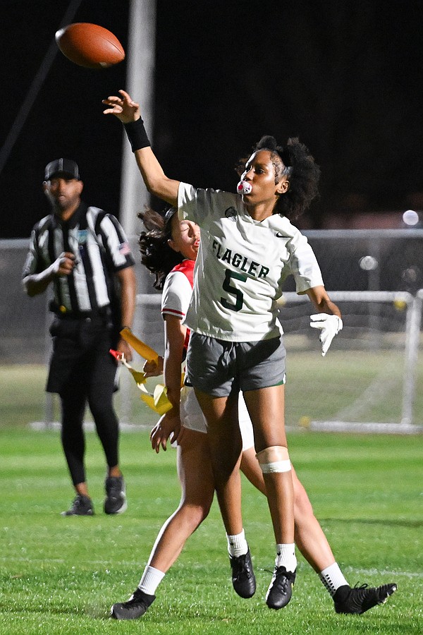 The FPC JV flag football quarterback gets a pass off against Seabreeze on Thursday, Feb. 19 at the Ormond Beach Sports Complex. Photo by Michele Meyers