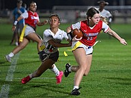 This is also FPC head coach John King’s first year coaching his team, but he brings 20 years of experience playing and coaching flag football in the military. Both he and Adkins are assistant tackle football coaches at their schools. King is also an assistant boys basketball coach.