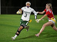Seabreeze's Madison Opalewski catches a pass in the game against FPC on Thursday, Feb. 19 at the Ormond Beach Sports Complex. Photo by Michele Meyers