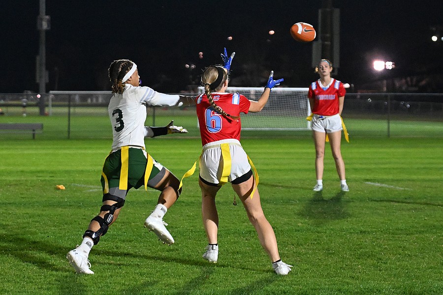 The Seabreeze JV flag football team wins 13-0 against FPC on Thursday, Feb. 19 at the Ormond Beach Sports Complex. Photo by Michele Meyers