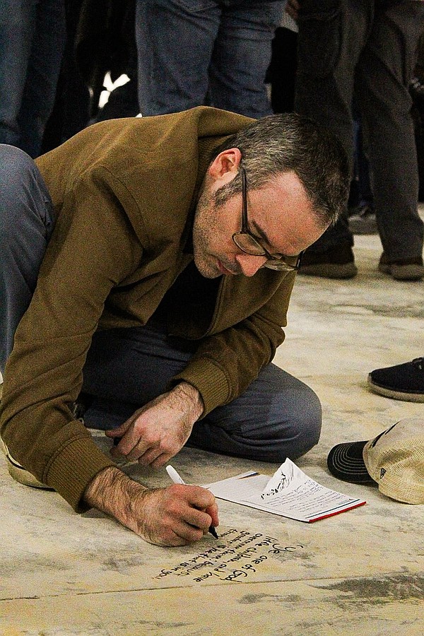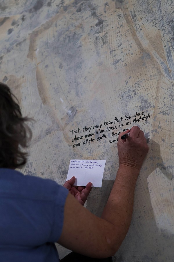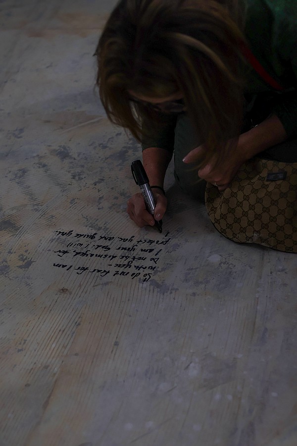 People write scriptures on the floor of the auditorium for the new Parkview Church Ormond Beach campus. Photo courtesy of Parkview Church