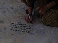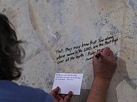 People write scriptures on the auditorium floor. Photo courtesy of Parkview Chu