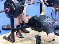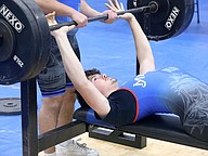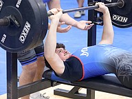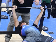 Matanzas' Tommy Gerkin bench presses. Photo by Brent Woronoff