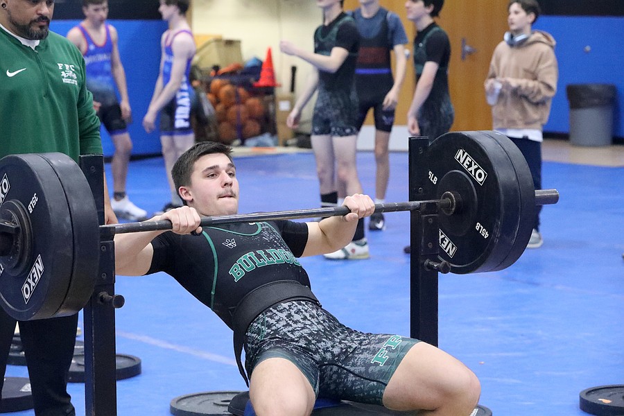 FPC’s other double winners were 119-pound Anthony Giacobbe (290-pound Olympic total, 300-pound traditional total), 139-pound Memphis Hambly (270 Olympic, 310 traditional), 169-pound Jackson Fedun (475 Olympic, 495 traditional) and 238-pound Joseph Casanova (480 Olympic, 500 traditional).
