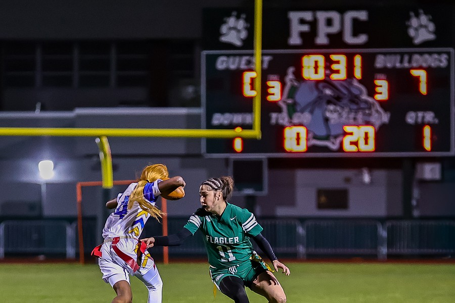 John King, Flagler Palm Coast’s first-year flag football coach, said his players are starting to understand the “why” behind what they are doing. By the end of the season, he said, he hopes the Bulldogs will be pretty tough to deal with. After four games, however, their defense has already proven to be tough to deal with.
