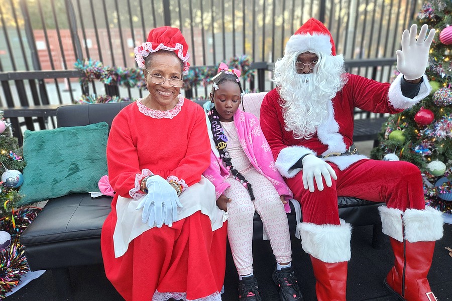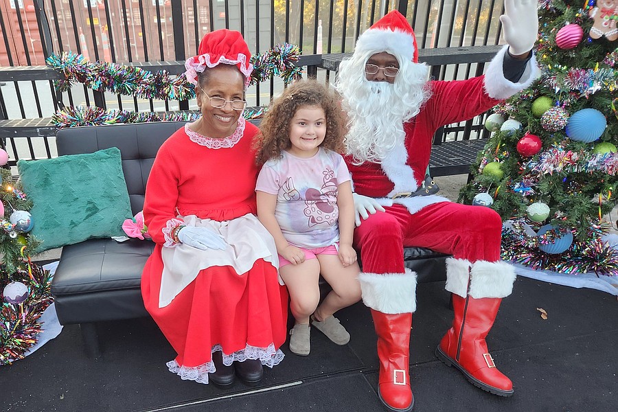 Santa and Mrs. Claus — Claude Larece and Michele Knox — with Janicka Alcindor. Courtesy photo