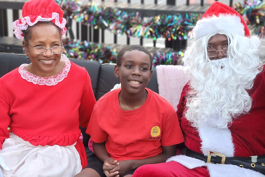 Santa and Mrs. Claus — Claude Larece and Michele Knox — with Jordon Via. Courtesy photo