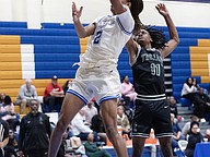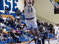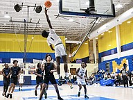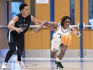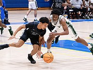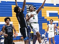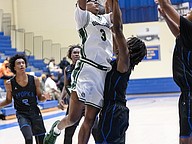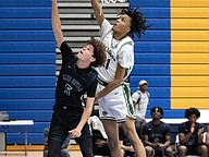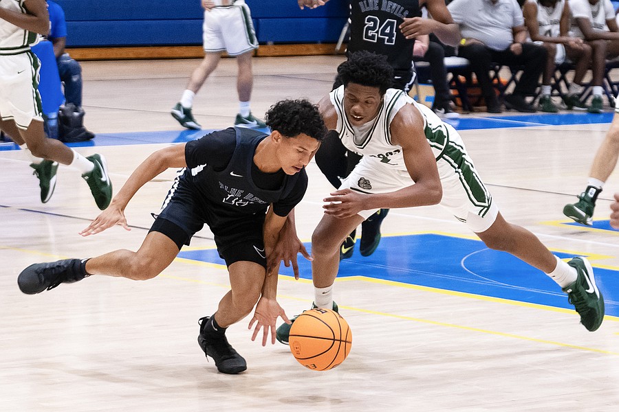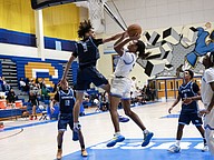 FPC's Tony Coates (right) battles Winter Haven's Norris Birdsong (left) for the ball at the Vince Carter Hall of Fame Classic on Monday, Dec. 29. Photo by Michele Meyers
