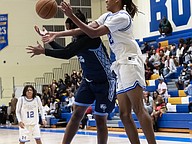 Mainland's Canyon Powers (right) grabs a rebound against Dr. Joaquin Garcia High School at the Vince Carter Hall of Fame Classic on Monday, Dec. 29. Photo by Michele Meyers
