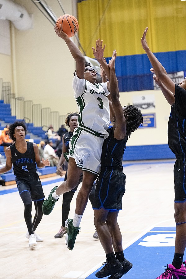 FPC's Anthony Hampton (3) grabs two points against Apopka at the Vince Carter Hall of Fame Classic on Tuesday, Dec. 30. Photo by Michele Meyers
