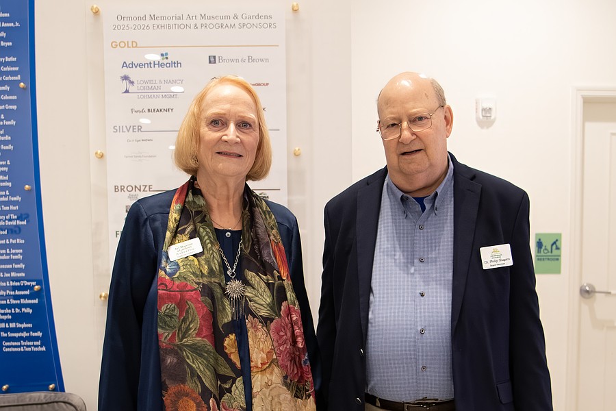 Ormond Memorial Art Museum & Gardens Guild Secretary Andrea Hoy and Board Member Dr. Philip Shapiro greet guests during the Starry Starry Night event. Photo by Suzanne McCarthy