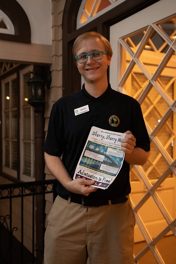 Zach Stohner, of the Ormond Beach Parks and Recreation departmeent, welcomes visitors to The Casements during the 36th annual Starry Starry Night. Photo by Suzanne McCarthy