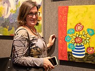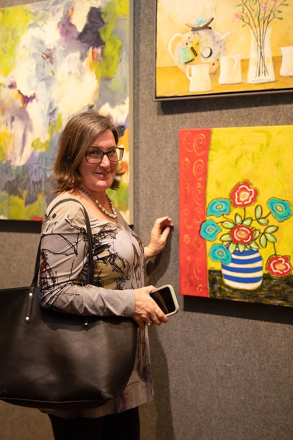 Maggie Evans, of Ormond Beach, enjoyed the art exhibition in the gallery at The Casements during Starry Starry Night. Photo by Suzanne McCarthy