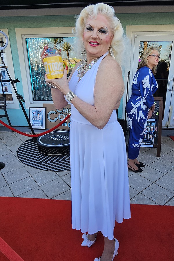 Cristy Barrick's friend Leesa Marie Benz dressed as Marylin Monroe for the Cristy B Comedy Club ribbon cutting. Photo by Sierra Williams
