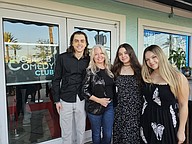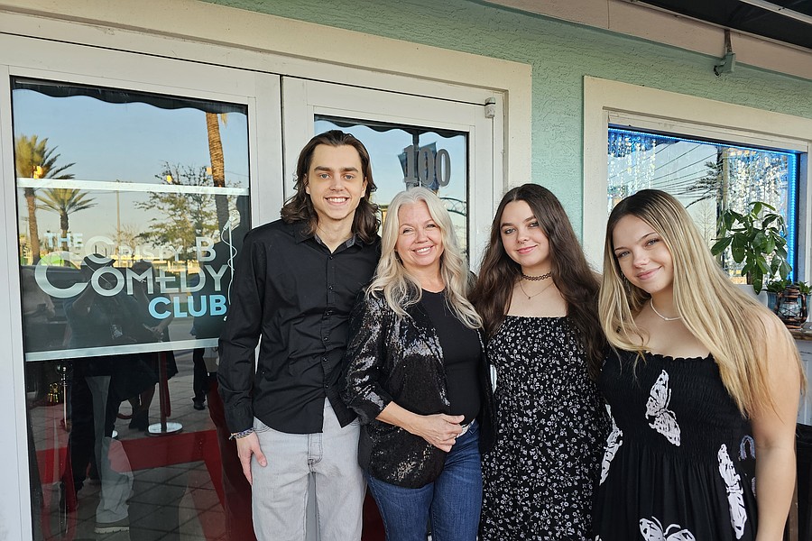 Cristy Barrick (second from the left) with her children at her grand opening of Cristy B Comedy Club. From left to right: Hudson, Cristy, Raelyn and Hayden Barrick. Photo by Sierra Williams
