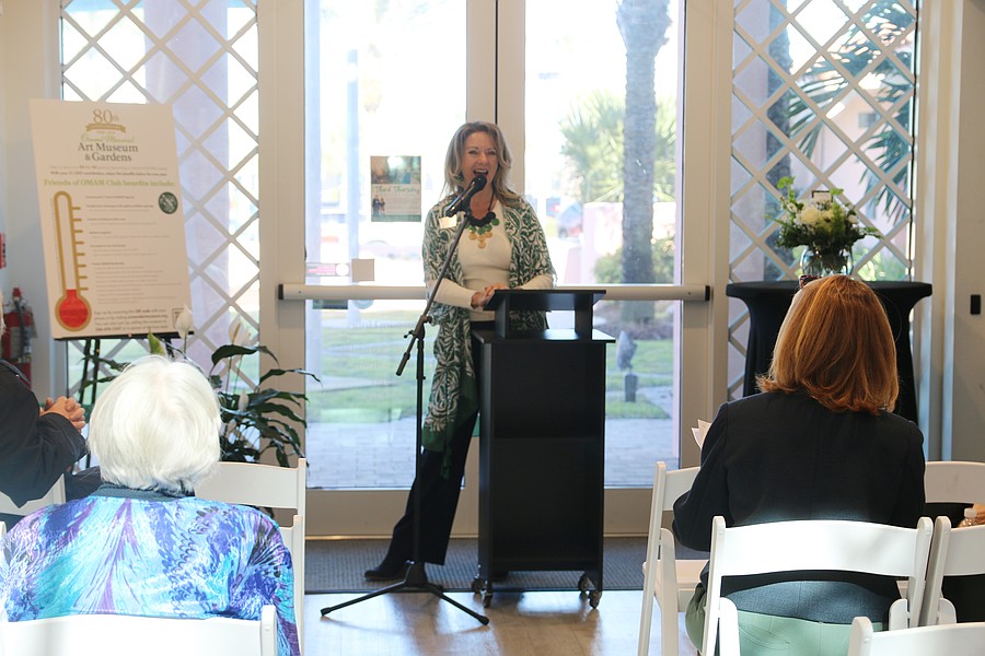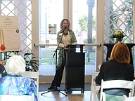 Stephanie Mason-Teague, executive director at Ormond Memorial Art Museum and Gardens, speaks during the Florida Arbor Day celebration on Friday, Jan. 16. Photo by Jarleene Almenas