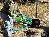 Volunteer Jody Gibian-Miles helps plant a new mulberry in Tomoka State Park's native garden. Courtesy photo