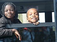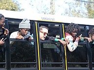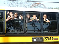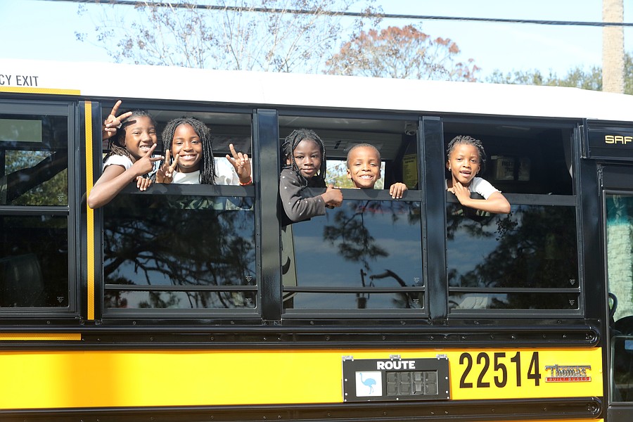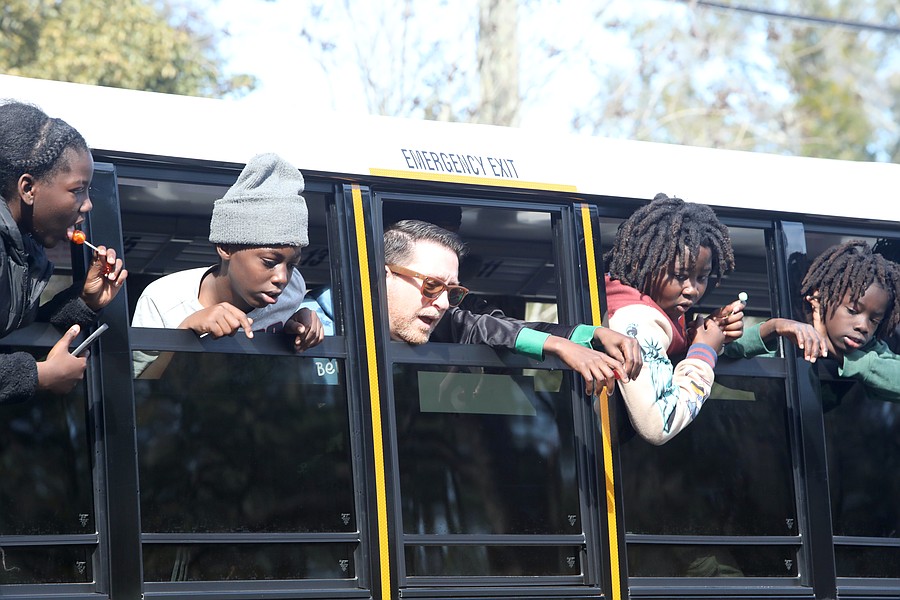 Kids look out from the Flagler Schools bus in the Martin Luther King Jr. Parade in Bunnell. Photo by Brent Woronoff