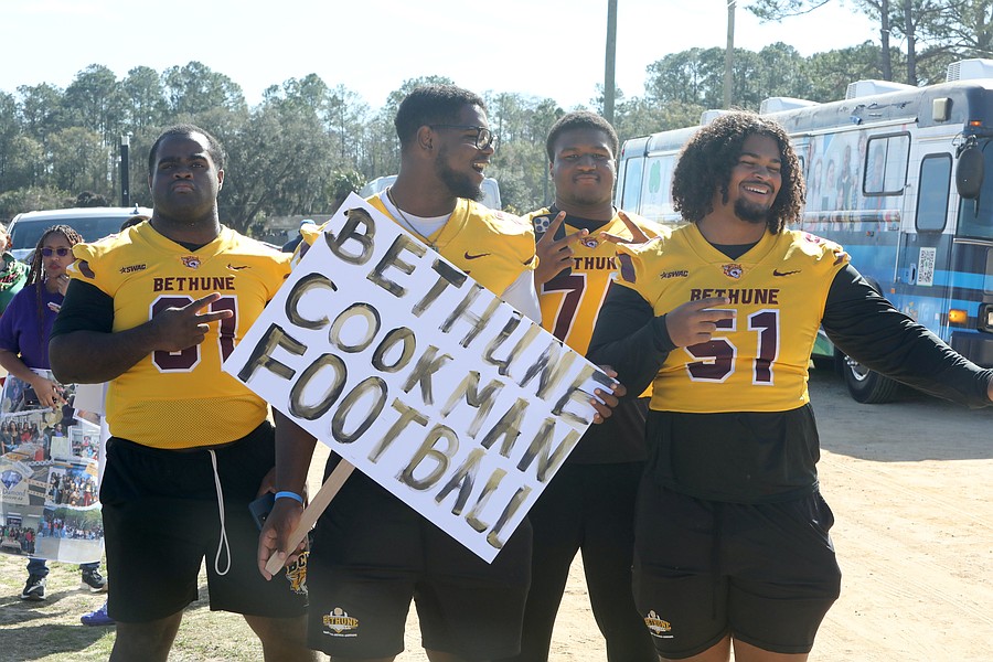 Bethune-Cookman University football players get ready at the Carver Center to join the Martin Luther King Jr. Parade. Photo by Brent Woronoff