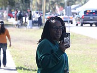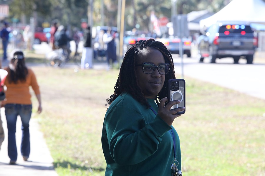Kristin Sobers takes a video of the Martin Luther King Jr. Parade in Bunnell. Photo by Brent Woronoff
