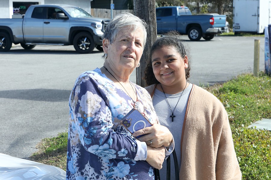 Mary Foote and Jazilyn Goodison watch the Martin Luther King Jr. Parade on U.S. 1. Foote's grandson marched in the parade with the Flagler Palm Coast High School JROTC. Photo by Brent Woronoff