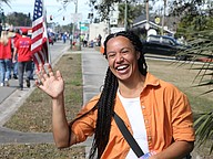 Waving from the school bus in the Martin Luther King Jr. Parade in Bunnell. Photo by Brent Woronoff