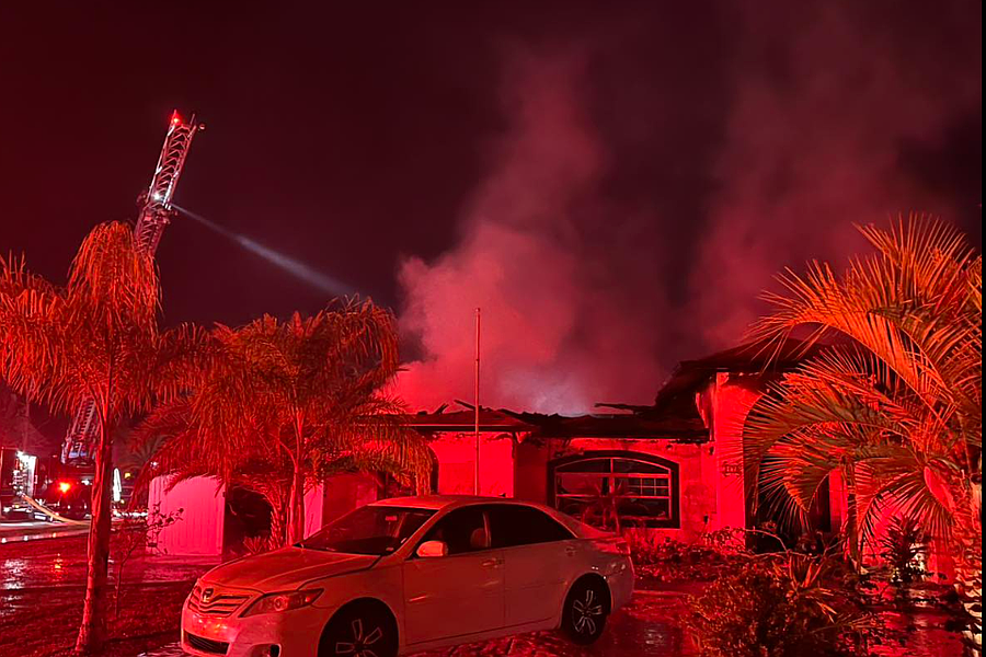 A home in Palm Coast's F Section as PCFD crews work to contain the flames on Jan. 16. Photo courtesy of PCFD Facebook, credit to: Shane Leib , F-Section Neighborhood Group