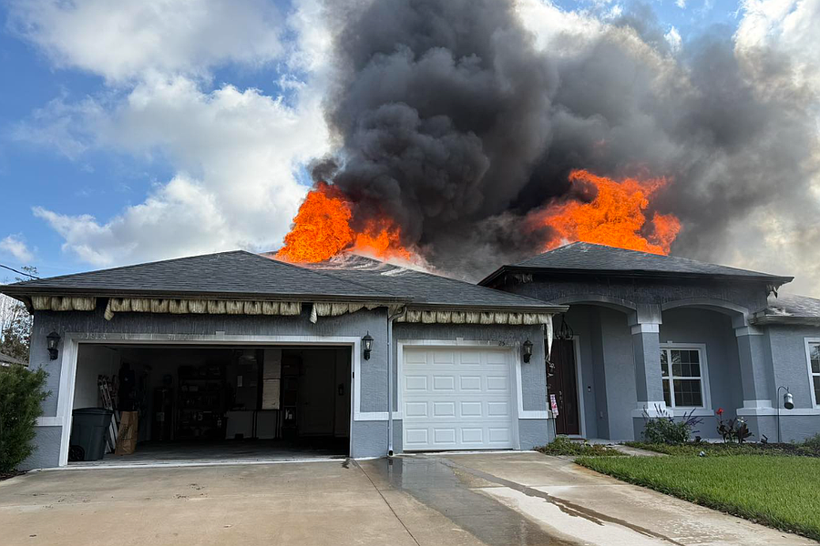In the evening on Jan. 16, a home in Palm Coast's F Section became engulfed with flames. The Palm Coast Fire Department's and Flagler County Fire Rescue's Engine 24, Engine 23, Engine 22, Ladder 25, Battalion 24 and fire police all responded to the scene, according to a PCFD Facebook post.