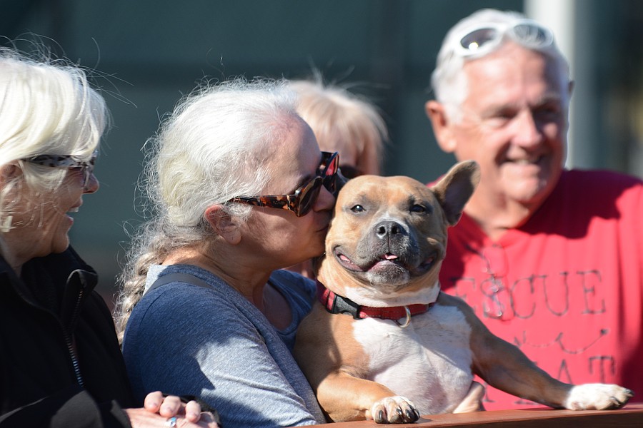 Renata Slusarz'hunter kisses Trixie at the Rainbow Bridge Event. Photo by Hannah Hodge