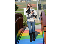 Christina Ryan and Loki crosses the rainbow bridge. Photo by Hannah Hodge