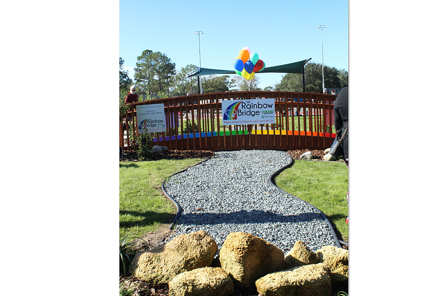 A Rainbow Bridge commemorating the lives of family pets has a permanent new home at Holland Park in Palm Coast.
