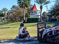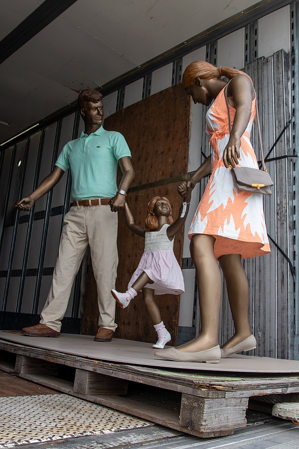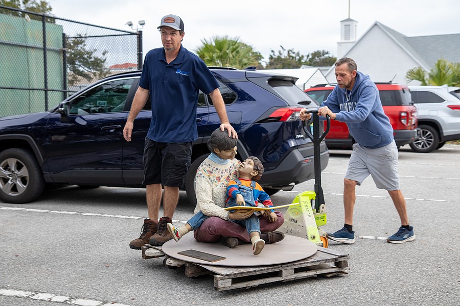 "Can We Dance Here, Mommy?," a sculpture by Seward Johnson, arrives for Art Imitates Life II – Beyond the Bronze in Ormond Beach. Photo by Suzanne McCarthy