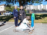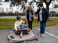 "No Mommy, That One!" is installed in Fortunato Park as part of Art Imitates Life II – Beyond the Bronze. Photo by Suzanne McCarthy