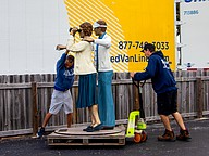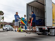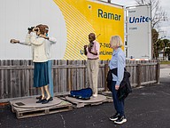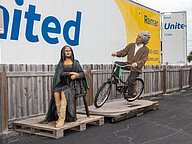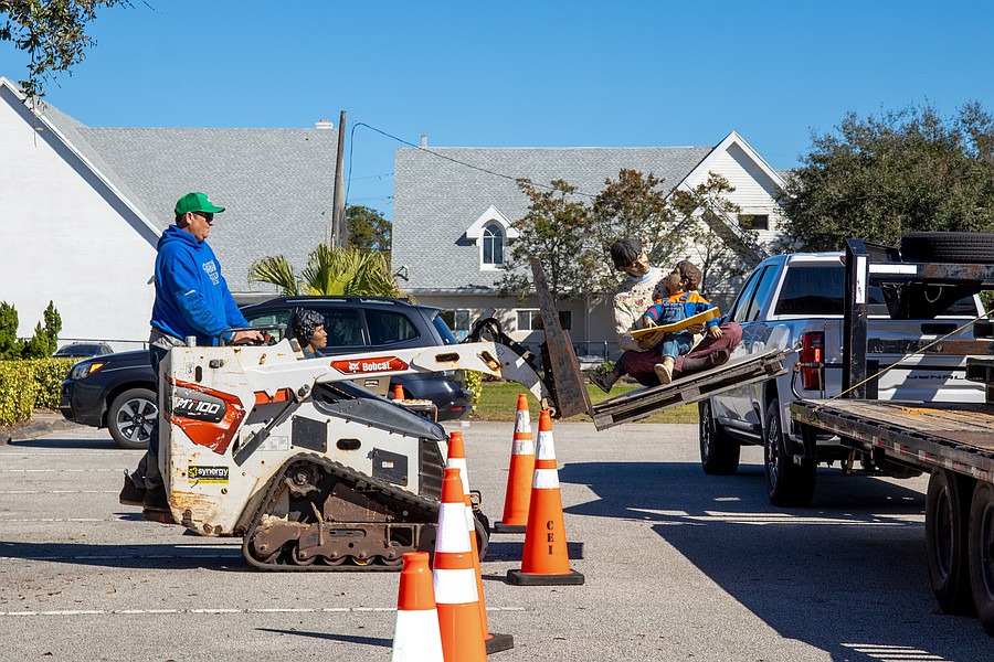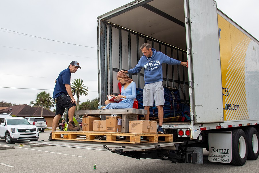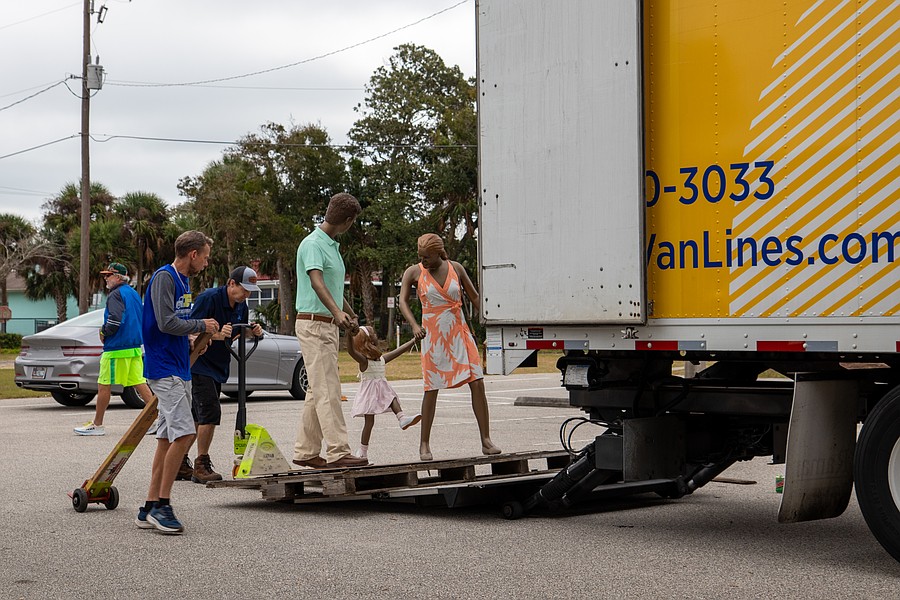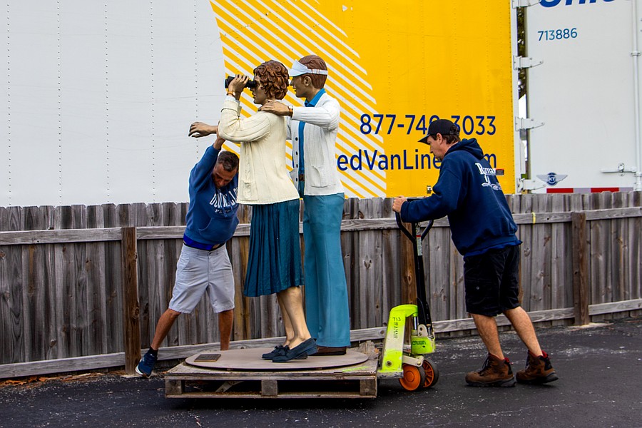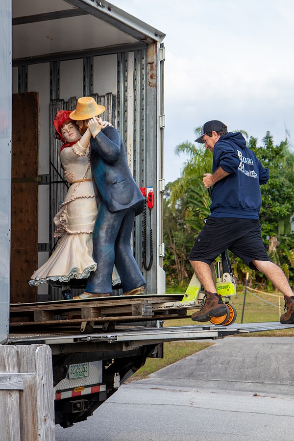 Seward Johnson sculptures are staged for installation after arriving for Art Imitates Life II – Beyond the Bronze in Ormond Beach. Photo by Suzanne McCarthy