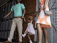 "No Mommy, That One!," a sculpture by Seward Johnson, arrives for Art Imitates Life II – Beyond the Bronze in Ormond Beach. Photo by Suzanne McCarthy