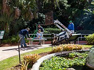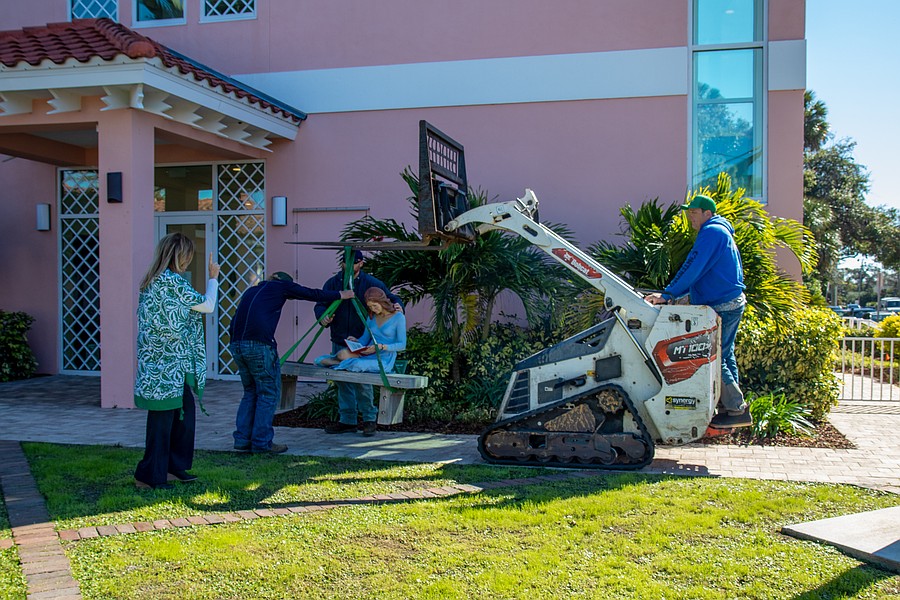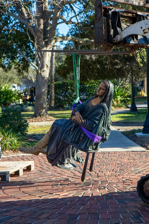 "Keep Life in Balance," a sculpture by Seward Johnson, is unloaded for Art Imitates Life II – Beyond the Bronze in Ormond Beach, presented by the Ormond Beach Arts District. Photo by Suzanne McCarthy
