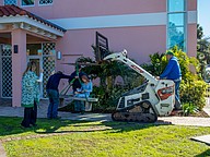 "Hot Weather" is installed at Granada Plaza, with crew members assisting as Ormond Beach Arts District President Julia Truilo looks on. Photo by Suzanne McCarthy