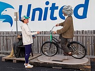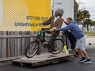"A Little to the Right," by Seward Johnson, arrives for Art Imitates Life II – Beyond the Bronze in Ormond Beach. Photo by Suzanne McCarthy