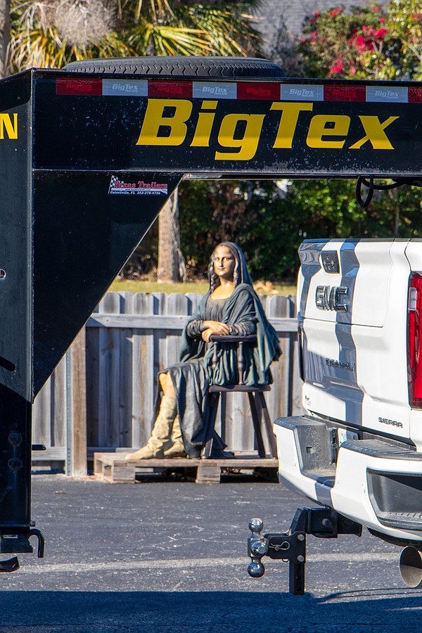 "A Reason to Smile," inspired by the Mona Lisa, waits its turn to be moved and installed at MainStreet Park. Photo by Suzanne McCarthy