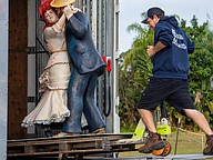 "Out of Sight," a sculpture by Seward Johnson, arrives for Art Imitates Life II – Beyond the Bronze in Ormond Beach. Photo by Suzanne McCarthy