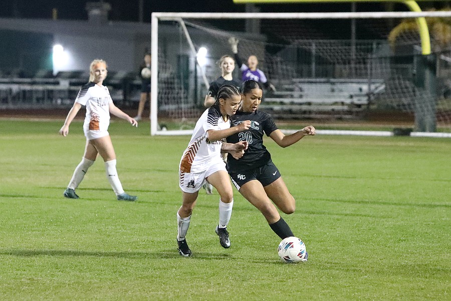 FPC defender Kadyn Davis (20) battles for the ball. Photo by Brent Woronoff