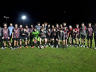 Seabreeze assistant coach Chris Simsek left poses with the team after the District 6-5A semifinal win against Pine Ridge on Thursday, Jan. 22 at the Ormond Beach Sports Complex. Photo by Michele Meyers