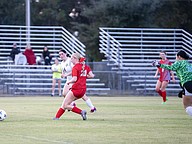 Seabreeze's Emily Barnes (19) moves the ball down field during the District 6-5A soccer semifinal on Thursday, Jan. 22 at the Ormond Beach Sports Complex. Photo by Michele Meyers