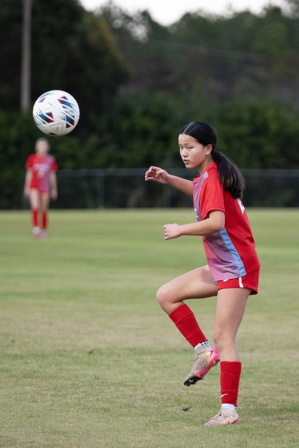 Seabreeze freshman Katherine Clark passes the ball during the District 6-5A semifinal on Thursday, Jan. 22 at the Ormond Beach Sports Complex. Photo by Michele Meyers